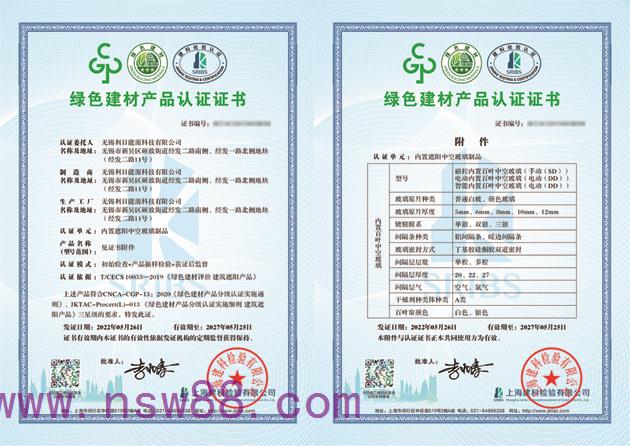 近日,无锡利日能源有限公司磁控内置百叶中空玻璃、电动内置百叶中空玻璃 、智能内置百叶中空玻璃系列产品成功取得“绿色建材产品认证证书”,增强了企业在投标过程中的硬实力。此次荣获绿色建材产品认证证书,也是无锡利日能源不忘初心、把握好绿色环保与经济发展的关系,走发展和保护协同共生的新路径决心的证明。